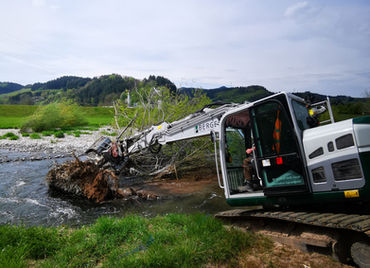 Die Aufgabe dieser Maßnahme bestand darin, eine durch Hochwasser ausgespülte Uferböschung neu zu errichten, um eine Abwasserleitung der Gemeinde Biberach, die sich im hinteren Bereich der Böschung befindet, vor Schäden durch weiteres Abbrechen der Böschung zu schützen.